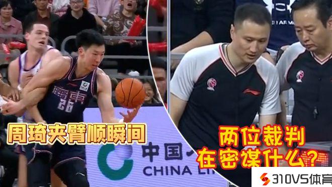 两位裁判在回看录像的时分嘀嘀咕咕聊了一阵,其实基本就是想找个理由不吹周琦违体犯规,最终二人合谋找到了一致的答案,二人的合议答案就是詹姆斯犯规在先,周琦的举措还不够大。
