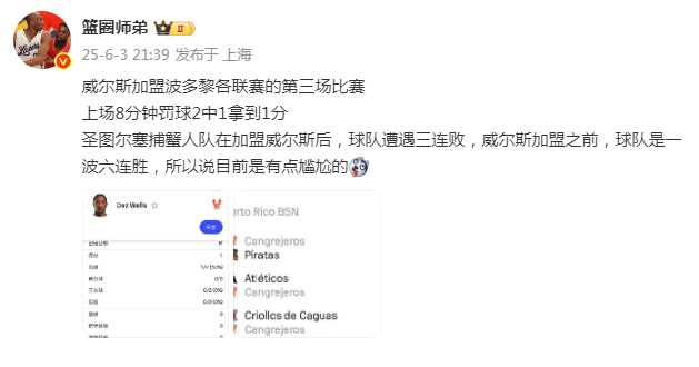 与威尔斯同一队的队友还有北控男篮内线萨林杰和前新疆队外援克拉克。据悉波多黎各联赛将在9月份结束,他不会影响新赛季CBA联赛。