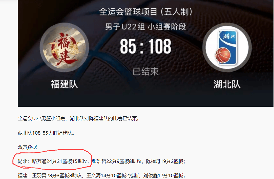 24分,21板,15助。说出来你可能不敢相信,这竟然是一个19岁少年打出来的数据。2025年全运会资格赛附加赛收官战,湖北队最终以108-85大胜福建队,不仅成功锁定一个全运会正赛名额。而且,在这一场比赛中,19岁的路万通砍下了超级大号三双。在轰下这场超级数据后,路万通已经成为了全运会一大焦点了,他会成为男篮未来锋线上的一大奇兵吗?