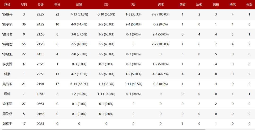 最终,辽宁队以83-68大胜四川队。具体数据如下: