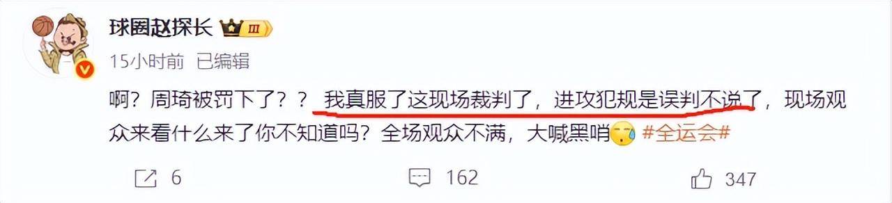 不仅是CBA赛场有很多争议哨,今年的全运会赛场也有严重的争议哨。