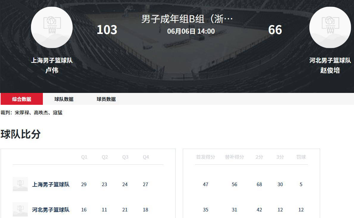 整体数据显示,上海队表现十分出色,全队10名球员都有上场时间,全部有得分贡献,其中4人得分超过两位数。除了张知垚的22分3篮板外,许裕茁得到11分,袁堂文贡献2分12助攻,戴昊得19分,李添荣贡献16分。