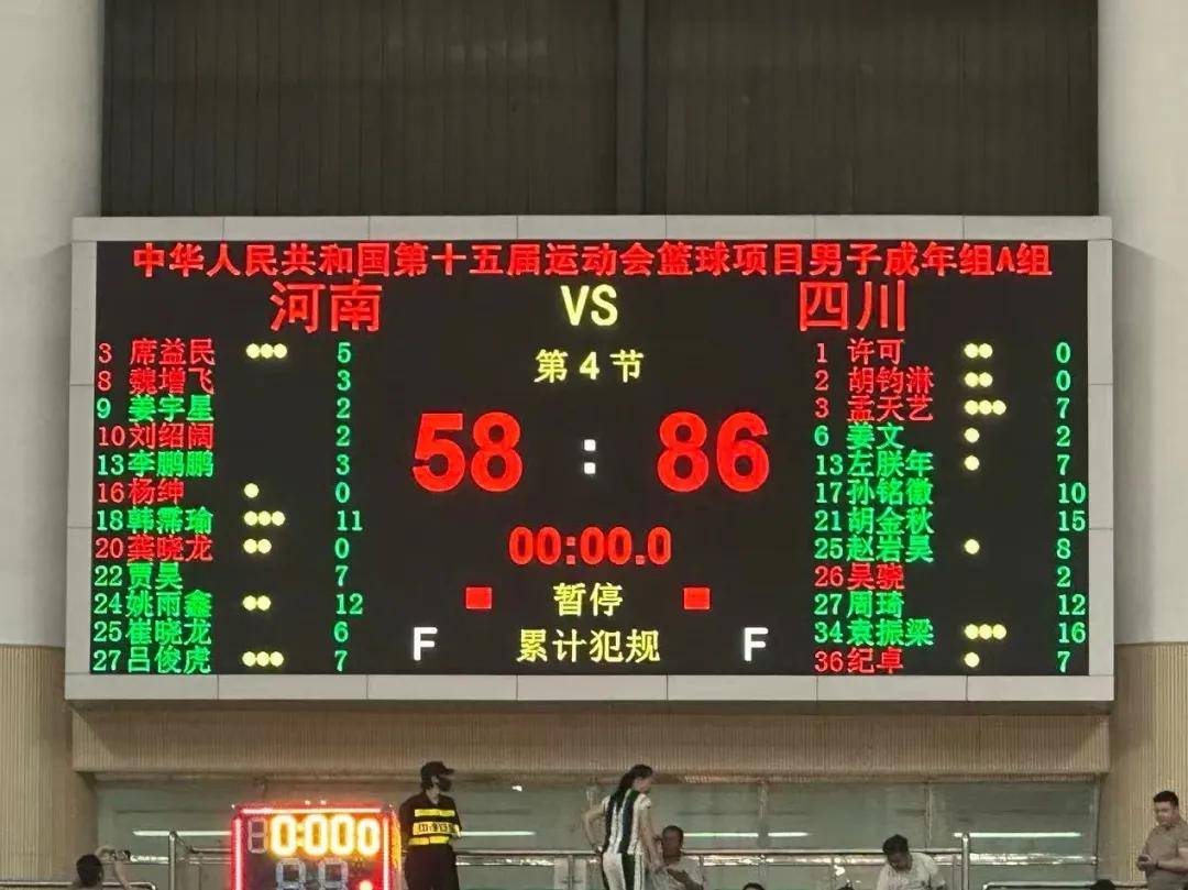 四川队86-58击败河南队,拿下全运会首胜。