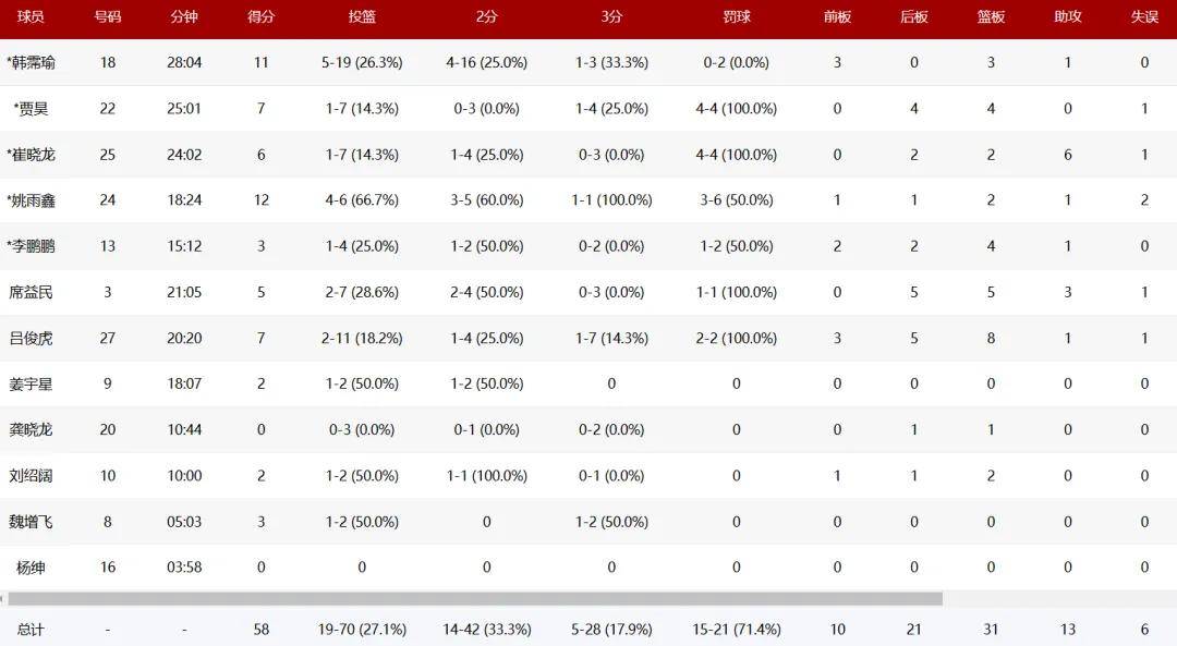 河南队全队数据如下: