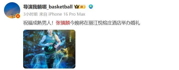 说说没参加今年全运会的张镇麟,大喜日子即将到来,将在丽江悦榕庄酒店举办婚礼。
