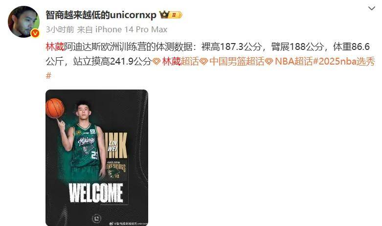 值得一提的是,林葳此前参加阿迪达斯全球训练营的体测数据已经曝光,裸高187.3公分,臂展188公分,体重86.6公斤,站立摸高241.9公分。