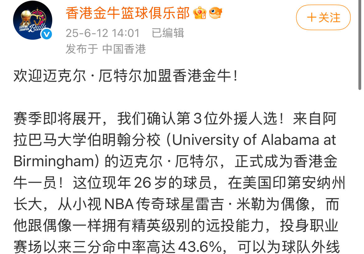 在新疆队、辽宁队、北京首钢队等多支CBA联赛球队都有补强小外援需求的情况之下,没有足够外援预算的广东队基本已经无缘引进在CBA联赛证明过自己的小外援。好在,朱芳雨和杜锋依旧有机会在NBL联赛中引进适合的小外援。近期,NBL联赛的豪门球队香港金牛男篮已经正式官宣签下了26岁的双能卫迈克尔-厄特尔。厄特尔作为一名持球、组织能力合格的双能卫,出道以来个人职业生涯的三分球命中率接近44%,这样的劲爆外线投篮能力可以说是很适合CBA联赛的小外援选择。