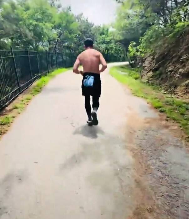 黄秋实的社媒有更新,他目前在假期中,但仍不忘长跑练体能。只见他一人在山上跑着,早已是大汗淋漓。