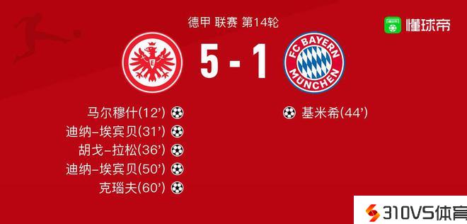 法兰克福vs拜仁慕尼黑全场数据:射门数14-21,射正数6-5