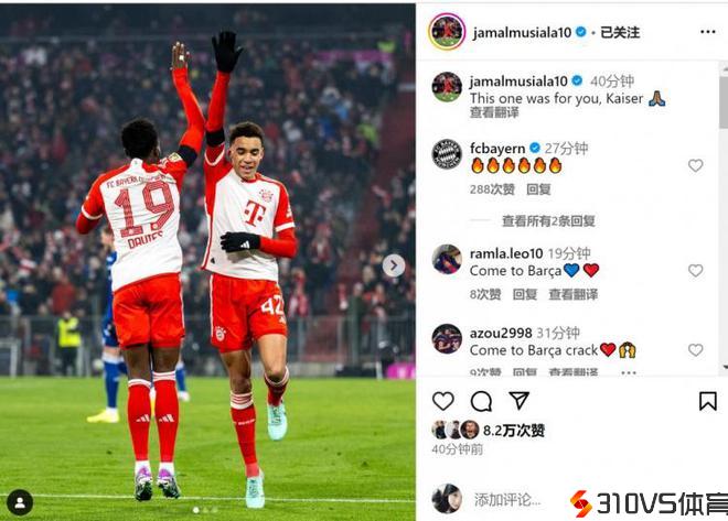 梅开二度!穆西亚拉社媒:这场成功献给贝肯鲍尔