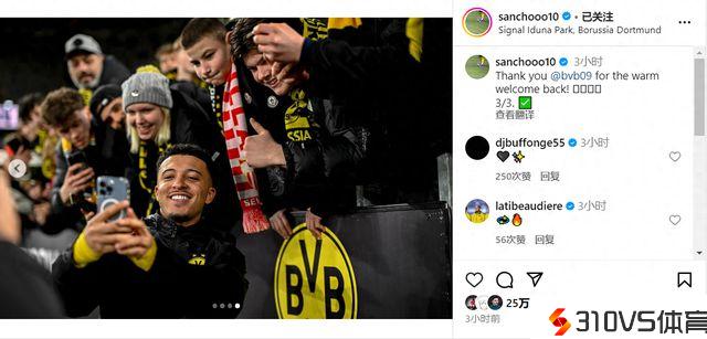 回归后主场首秀&多特三连胜,桑乔晒照致谢球队和球迷
