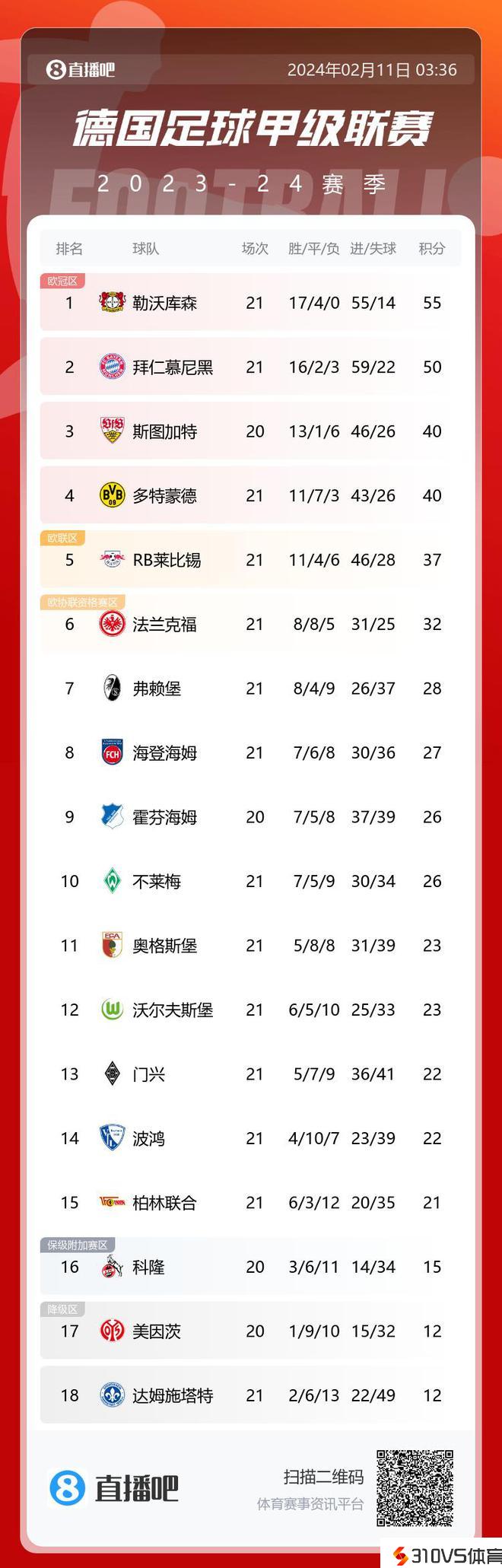 药厂完胜拜仁!德甲积分榜:勒沃库森抢先拜仁5分!