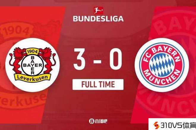 全场竞赛完毕,勒沃库森3-0拜仁慕尼黑。