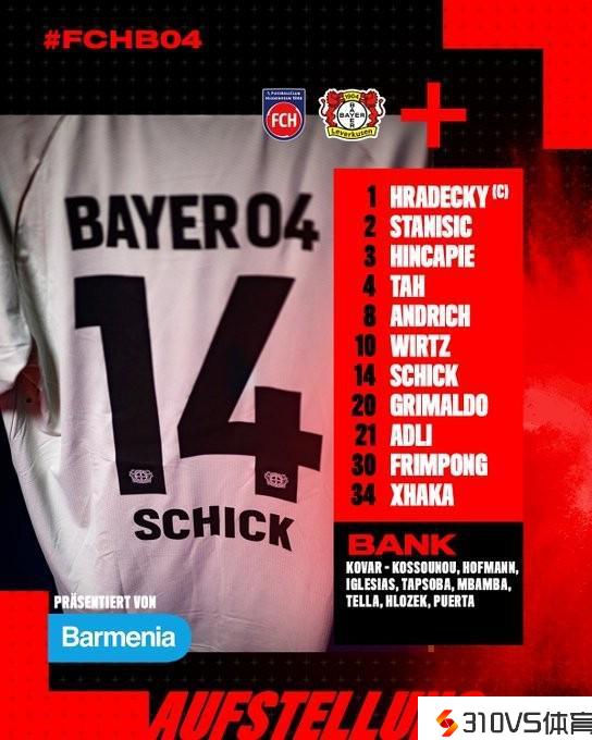 海登海姆vs勒沃库森:维尔茨领衔,扎卡、希克出战