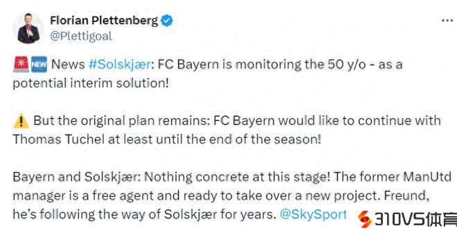 索尔斯克亚执教拜仁?天空体育:他很无时机,拜仁临时关注他