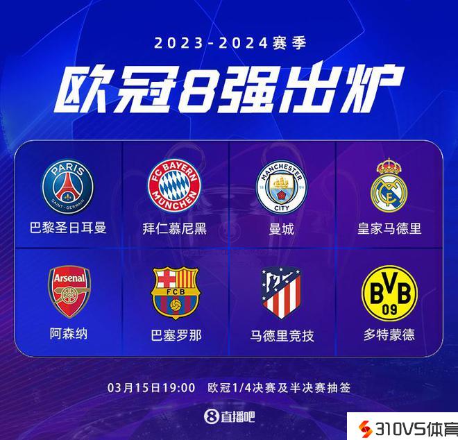 欧冠1/4决赛对阵:马德里竞技vs多特蒙德