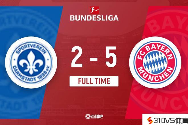下半场伤停补时8分钟,全场竞赛完毕,最终拜仁5-2达姆施塔特。