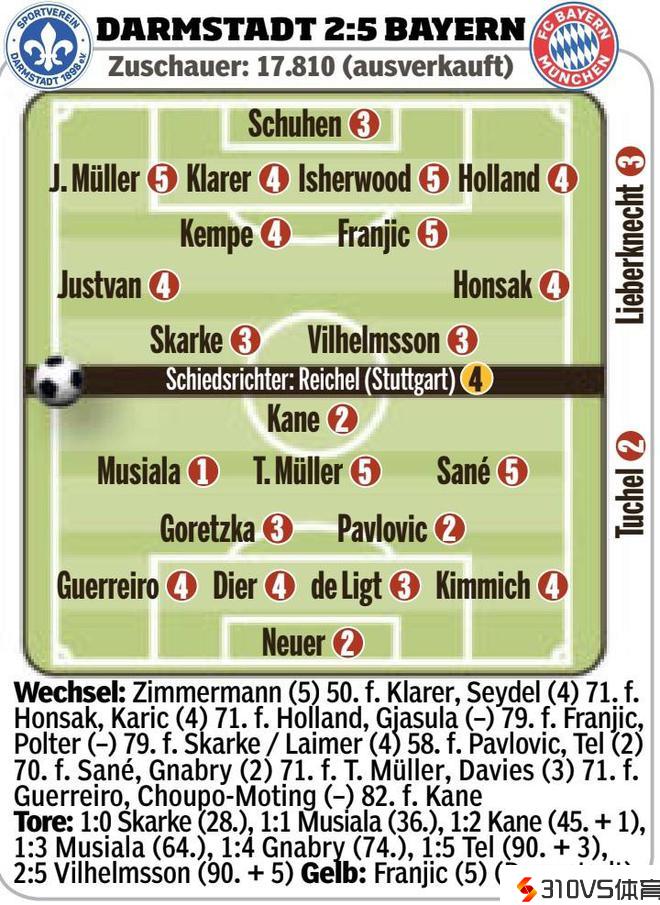 图片报拜仁vs达姆施塔特评分:穆勒、萨内5分,穆西亚拉1分