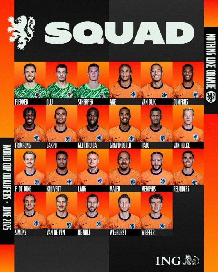 荷兰因征战欧国联淘汰赛,3月的两场世预赛延期。3月份荷兰与西班牙完成了欧国联1/4决赛2回合较量,两场比赛常规时间比分均定格为2-2平局。首战荷兰坐镇阿布斯特丹主场,在尼科威廉姆斯开场10分钟就为西班牙打破僵局情况下,加克波和赖因德斯各入1球反超比分,但下半场荷兰19岁年轻后卫哈托恶意蹬踏被红牌罚下,多一人作战的西班牙直到补时阶段由梅里诺顽强扳平。次回合荷兰两次落后情况下,德佩和马特森分别帮助球队扳平,进入加时后亚马尔和哈维西蒙斯又各入1球,最终点球大战马伦和诺阿·朗罚丢,西班牙惊险晋级。