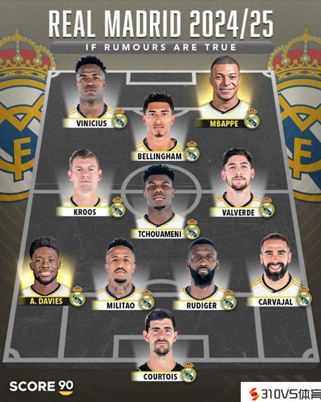 太豪华了皇马下赛季首发预测:姆巴佩、阿方索加盟