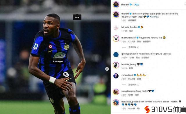 小图拉姆社媒庆贺获胜,标签选的是姆巴佩......