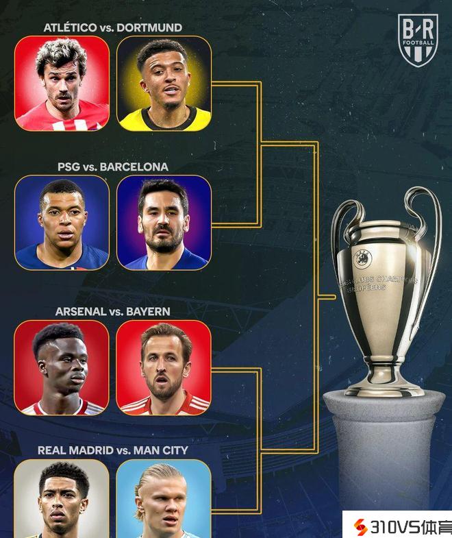 在另一组中,马德里竞技对阵多特蒙德的胜者将在半决赛中对阵巴黎圣日耳曼对阵巴塞罗那的胜者。阿森纳、皇马、马竞和巴黎圣日耳曼将在首回合竞赛中坐镇主场。