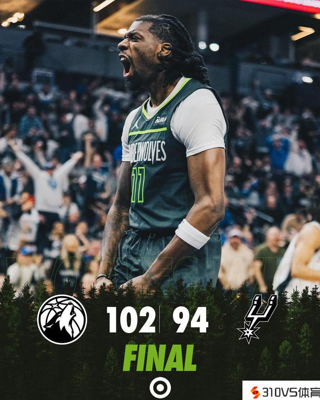 瓦塞尔底角投中三分,惋惜之后马刺队延续错失追分时机,爱德华兹两罚全中,森林狼队以100-90抢先。约翰逊投中三分无济于事,森林狼队以94-102落败。