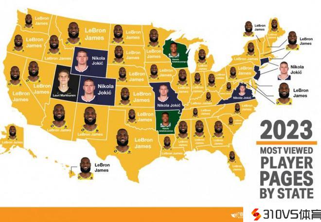 BBR晒本季各州被阅读次数最多球员:詹姆斯在41个州处于抢先位置