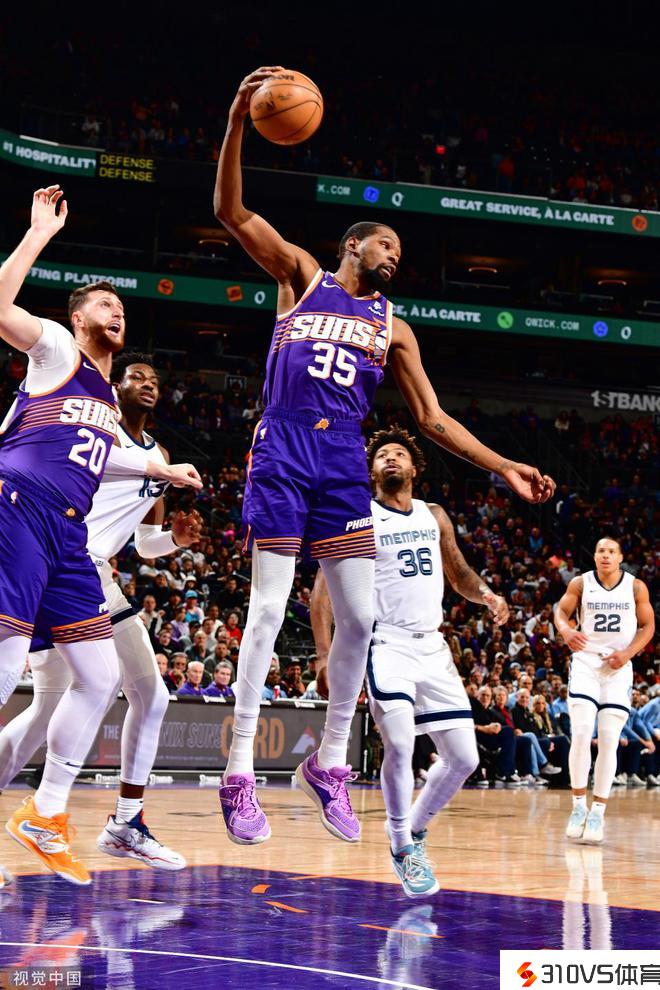 太阳:阿伦4记三分16分,杜兰特23分10篮板5助攻,努尔基奇18分19篮板5助攻,比尔12分6篮板5助攻,布克24分8助攻。