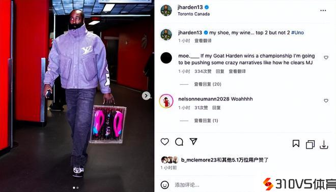 赛前,哈登心境相当不错,他在社交媒体上发布了赛前的入场照,只见登哥手中提着自己的新款战靴,中间还有一瓶哈登品牌的红酒。