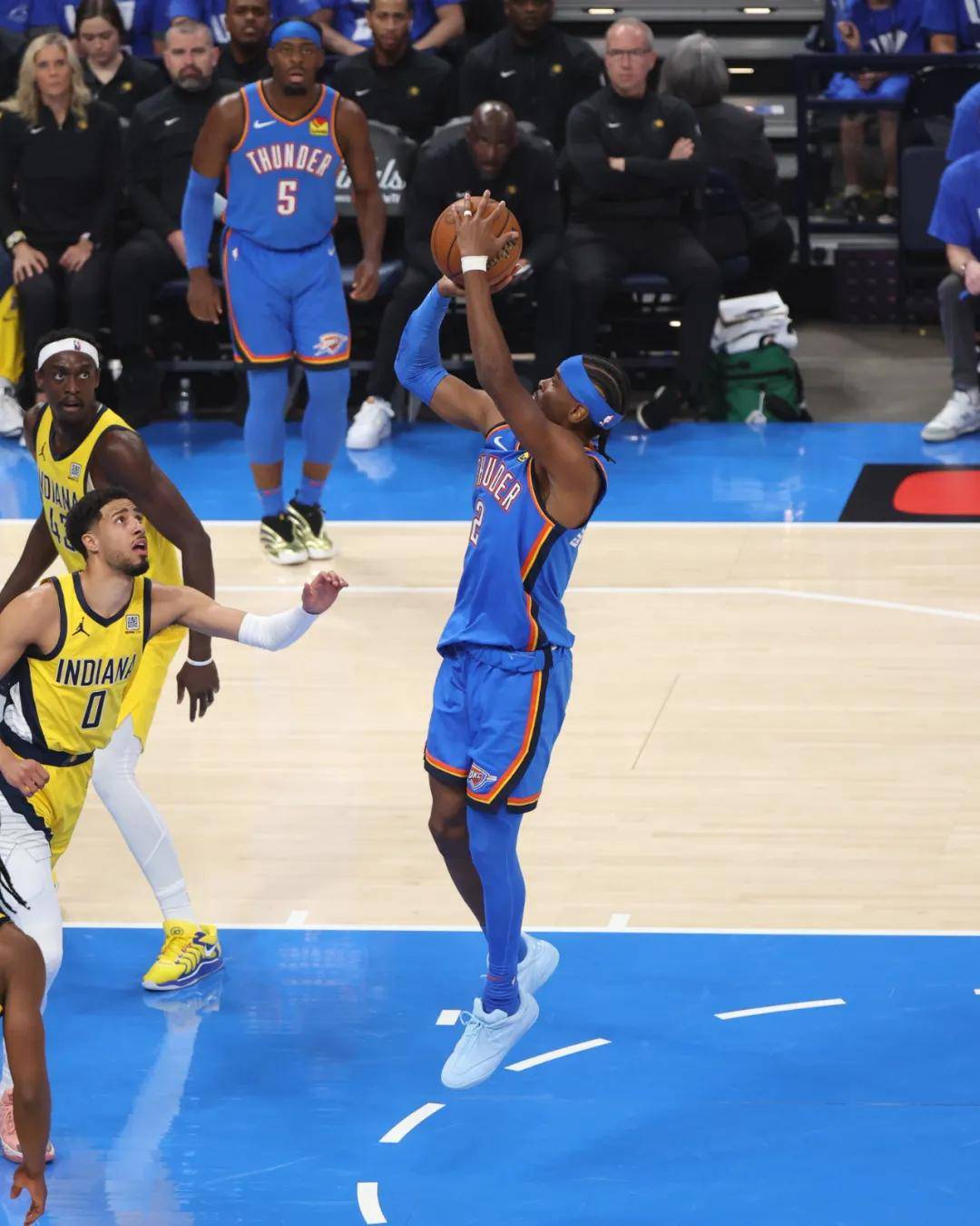 雷霆相当于自废武功,总决赛G1篮板球输给步行者17个!说回今天这场G2,第一节直到最后3分钟,雷霆才祭出双塔。步行者杀不到篮下,只能飘着投三分。第一节打完,雷霆26比20领先6分,内线得分雷霆10比0碾压步行者!