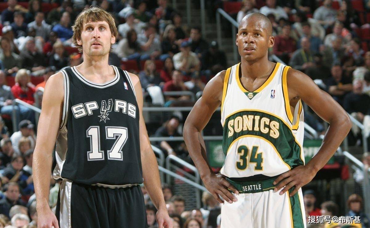 在超音速的 5 个赛季,他把三分球炼成致命武器 —— 连续五年三分命中率超 40%,2001-02 赛季迎来巅峰,场均 14.5 分 5 篮板 4 助攻,带队杀进季后赛。但西雅图多年无冠让他转投马刺,在 GDP 身边甘当无球投手:“我不需要球权,只要站在底角等邓肯分球。”
