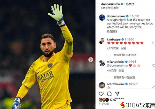 多纳鲁马谈欧冠不敌米兰:这不是我们想要的结果,剩下2场加油