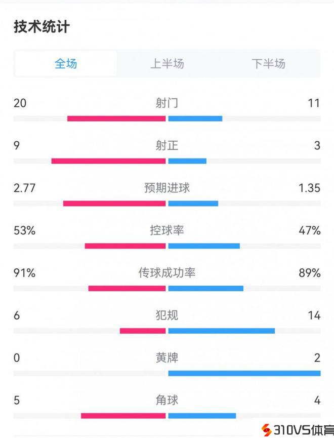 皇马4-2那不勒斯数据:射门20-11,射正9-3,控球率五五开