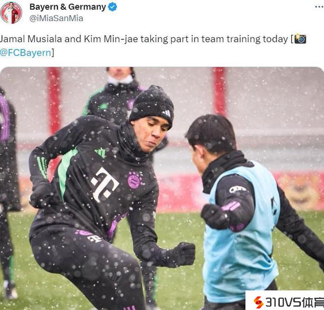金玟哉和穆西亚拉明天参与了拜仁合练,复出在即
