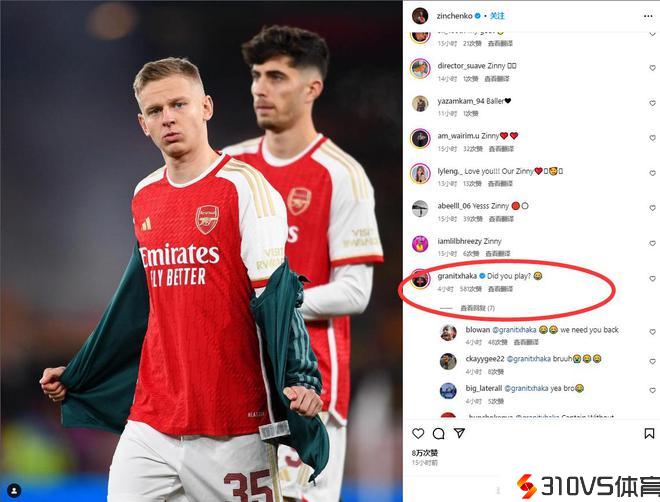扎心了老铁津琴科社媒庆贺成功,扎卡调侃:你有上场吗❓