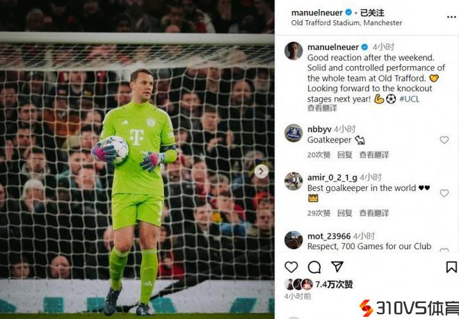 诺伊尔社媒庆贺打败曼联:这是对周末输球的最好回应