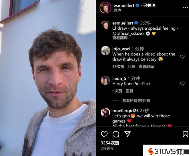 穆勒谈抽到拉齐奥:罗马我们来了,拜仁加油!⚽