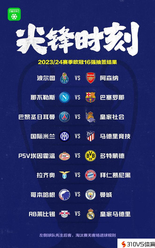 欧冠1/8决赛对阵出炉:巴萨将战那不勒斯,国米遭遇马竞