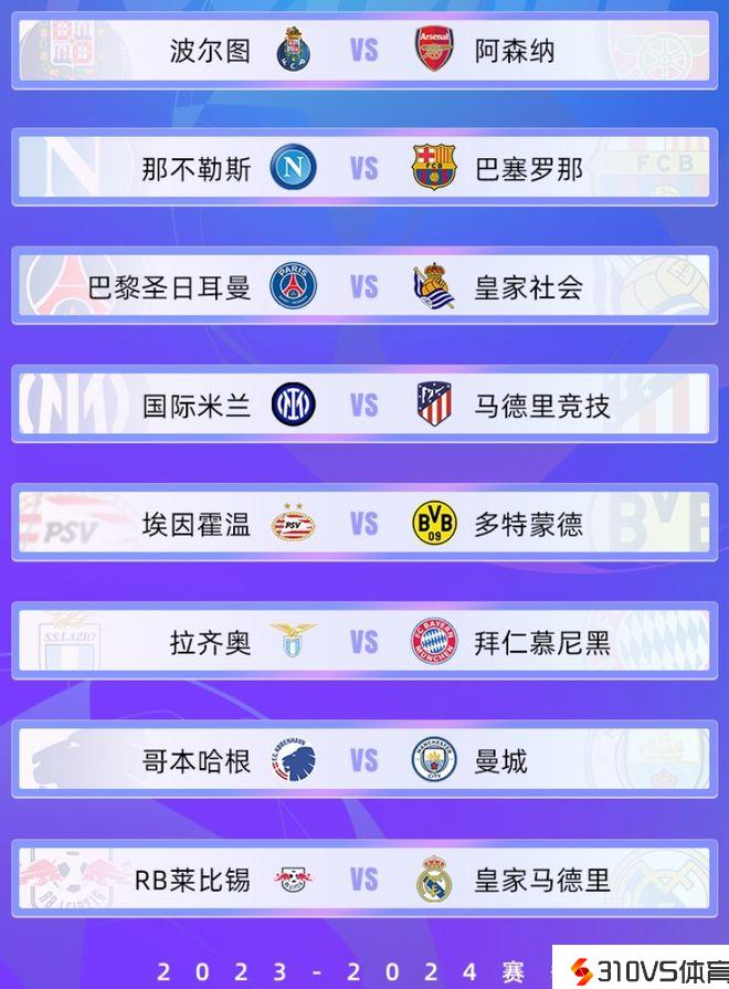 首先是大巴黎!这支土豪球队,本赛季16强抽签运气爆棚,作为小组第二的球队,面对小组第一的队伍拜仁、阿森纳、皇马、皇家社会、马竞、多特、曼城、巴萨。大巴黎直接抽到小组第一实力最弱的皇家社会,这是躺进八强的节拍!