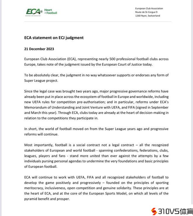 在欧足联的判决下发的第一时间,皇马和巴萨都就欧超联赛的效果发布了声明,而随后各大豪门球队则是纷繁宣布了声明,表示不会参与欧超联赛,其中包括西甲联赛的马竞、德甲联赛的拜仁以及英超联赛的曼联,这三支球队是回应速度最快的3支豪门球队,也是曾经欧超1.0时期的会员俱乐部。而包括瓦伦西亚、塞维利亚等球队,都曾经宣布了声明,拒绝参与欧超联赛。