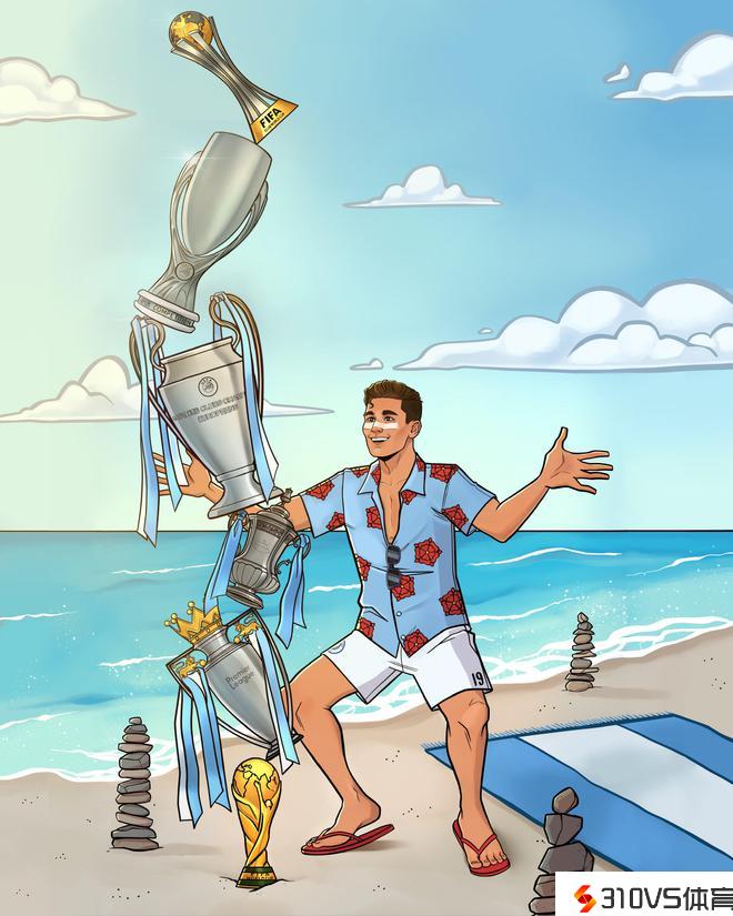 图中的奖杯区分是:世界杯(阿根廷)、英超、足总杯欧冠、欧超杯、世俱杯