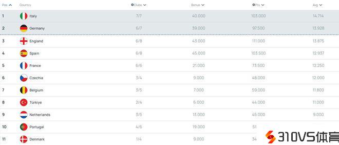 竞争欧冠裁军席位!本赛季欧战系数:意甲居首,德甲、英超二三位