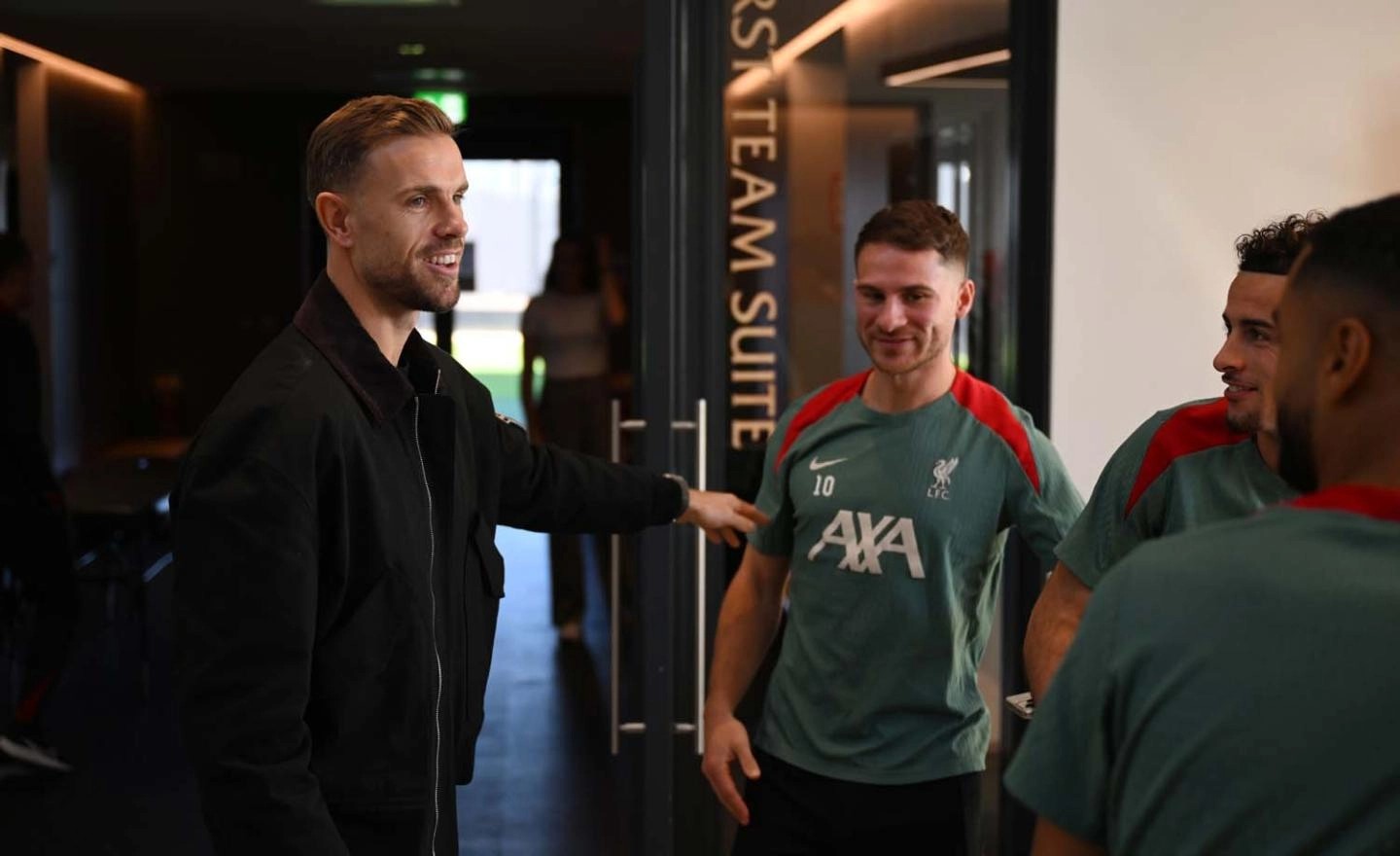 利物浦官方晒照,前红军队长亨德森回到了俱乐部训练基地,与前队友们重聚。