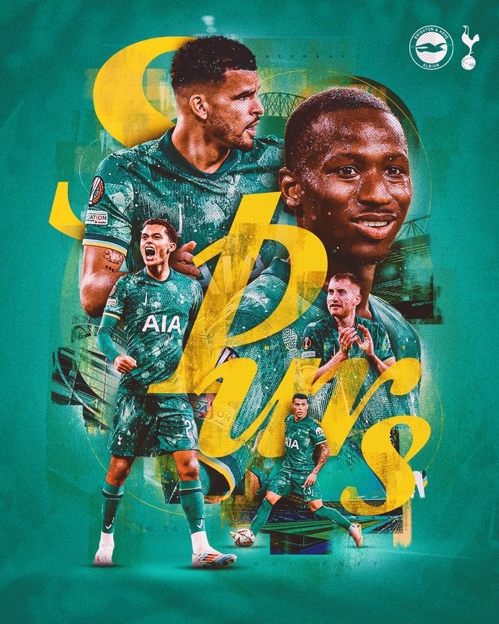 北京时间10月6日晚23点30分,英超第7轮,热刺将在客场对阵布莱顿。赛前,热刺官方发布了本场比赛的赛前海报。