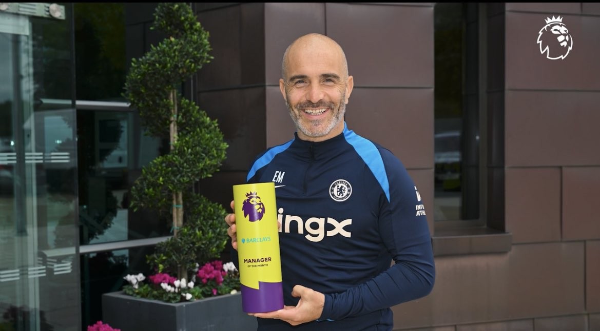 英超官方消息,切尔西主帅马雷斯卡当选英超9月最佳主帅。
