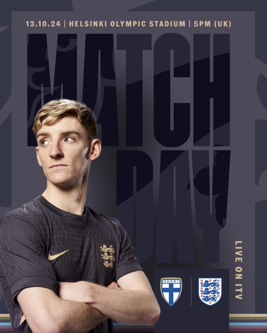北京时间10月14日0点,欧国联B级联赛第四轮,英格兰队将前往客场挑战芬兰队。赛前,英格兰队官方发布了本场比赛的预热海报。
