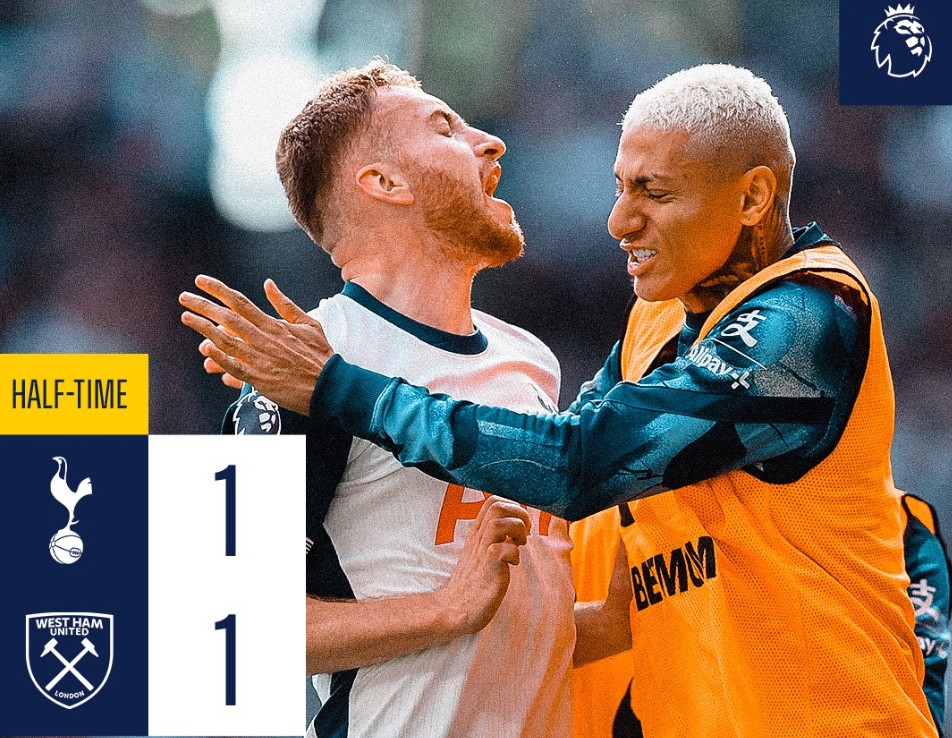 在英超第8轮的比赛中,托特纳姆热刺在上半时过后主场1-1暂时战平西汉姆联,此战库杜斯开场仅18分钟就为铁锤帮率先破门,库卢塞夫斯基第36分钟为托特纳姆热刺扳平场上比分。