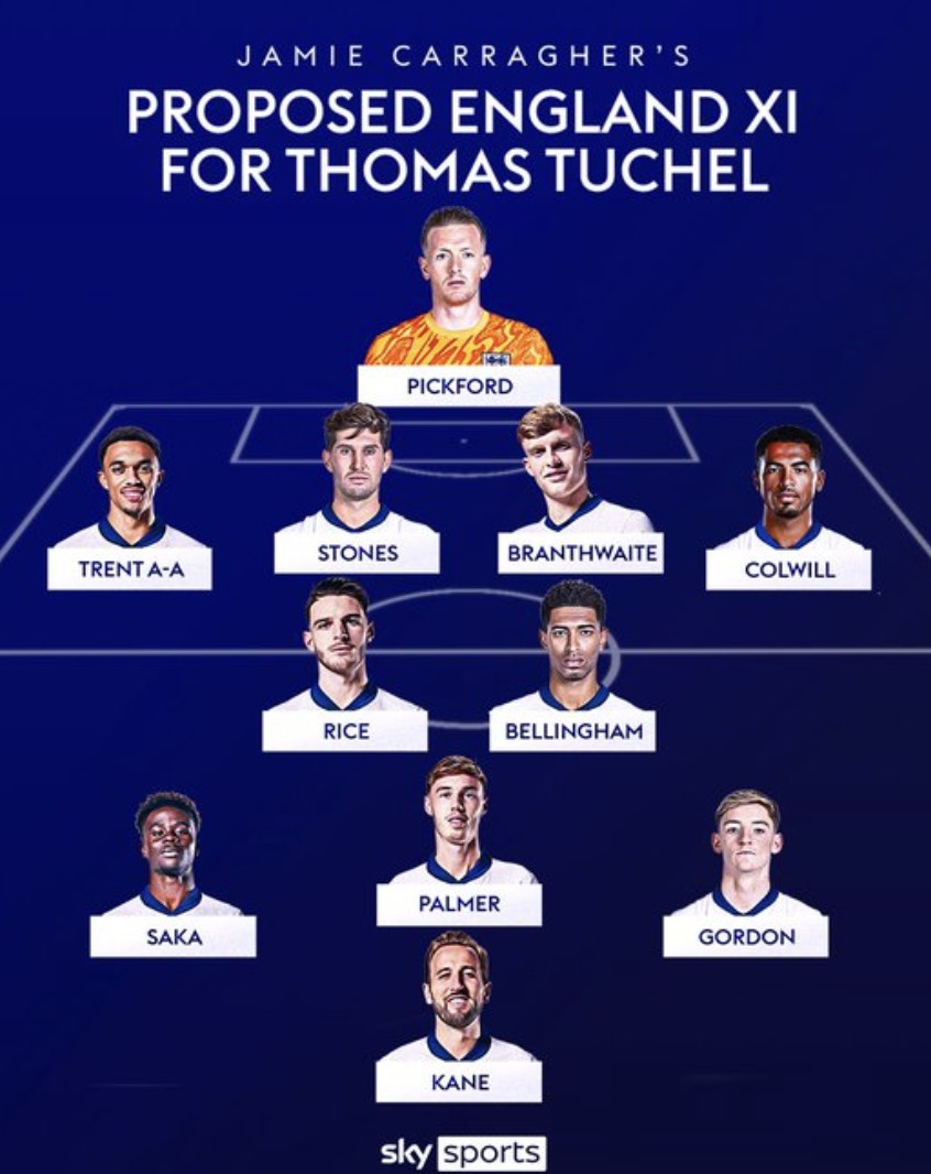 卡拉格预测图赫尔执教后的英格兰首发:帕尔默、科尔威尔在列