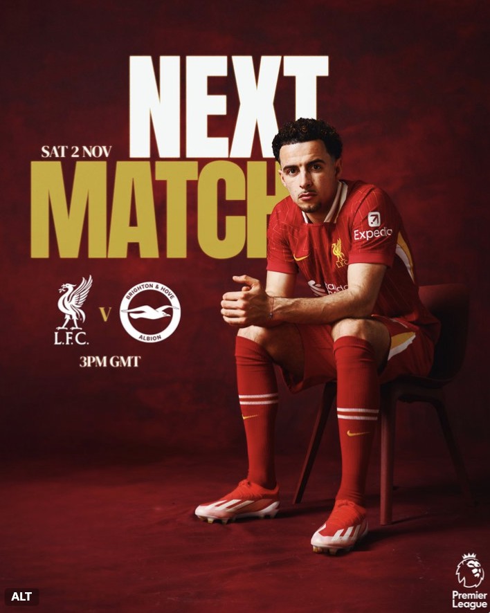 北京时间11月2日晚23点,英超第10轮,利物浦将在主场迎战布莱顿。赛前,利物浦官方发布了本场比赛的预热海报。